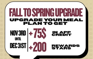 Email us to Upgrade!Spring Meal Plan Promo | 11/03 - 12/31