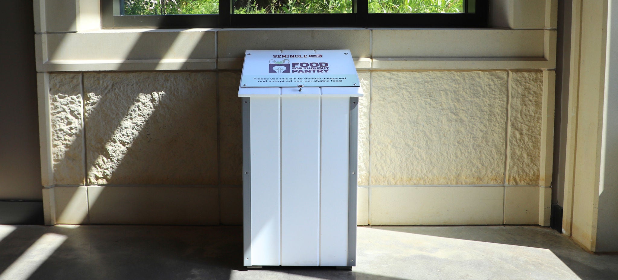 Find the bin inside Seminole Café by the cashier stand — it's easy to donate before dining.